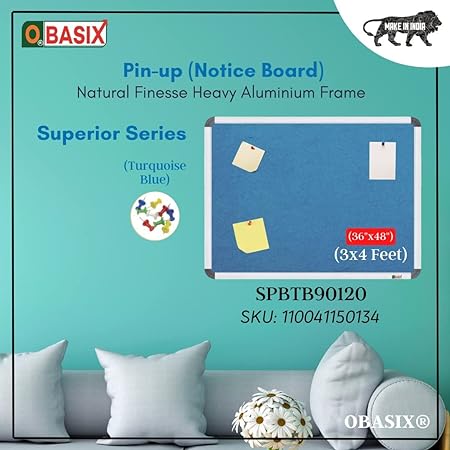 OBASIX® Superior Series Pin-Up Bulletin Notice Board (3×4 Feet) Turquoise Blue For School College Offices | Powder Coated Black Frame SPBPCBTB90120